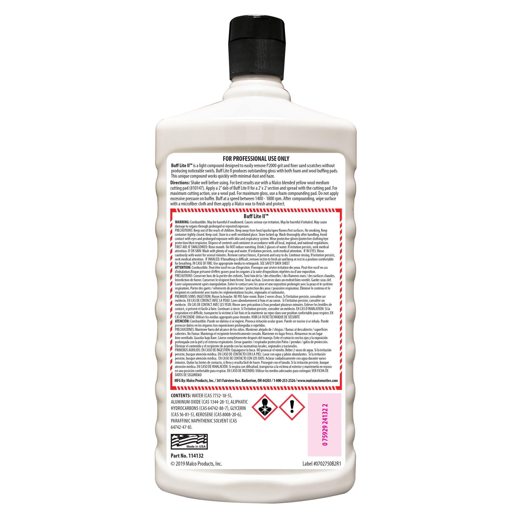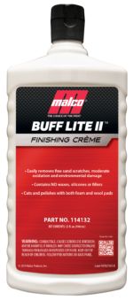 Buff Lite II™ Finishing Crème es un compuesto pulidor ligero para corregir la pintura que elimina fácilmente los rayones de grano P2000 y de lijado más fino sin producir remolinos visibles. La corrección de superficies nunca ha sido tan fácil, ya que Buff Lite II produce un mínimo de polvo y neblina. Úselo con almohadillas pulidoras de espuma o lana para lograr el acabado brillante y espectacular que desea.