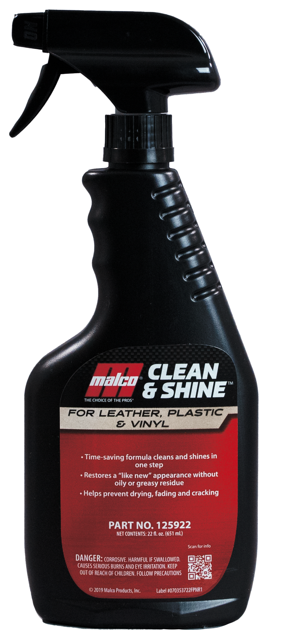 Clean & Shine es uno de los productos para el cuidado del automóvil más vendidos de Malco y es lo que los limpiadores profesionales usan para limpiar el interior de un vehículo. Clean & Shine es rápido y fácil de aplicar con una toalla de microfibra y deja un acabado satinado que restaura las superficies interiores a su apariencia original.