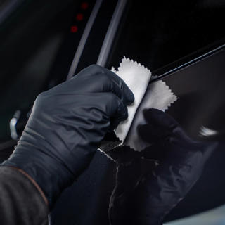 4. Aplique el revestimiento cerámico a la superficie del vehículo en forma de rayado, ejerciendo una presión uniforme. Recomendamos trabajar en un área definida de 20 x 20 pulgadas hasta que el producto se incorpore a la capa transparente.