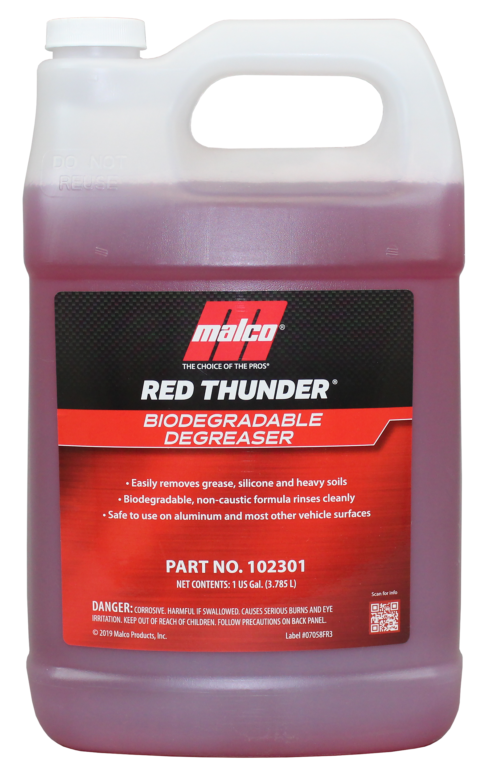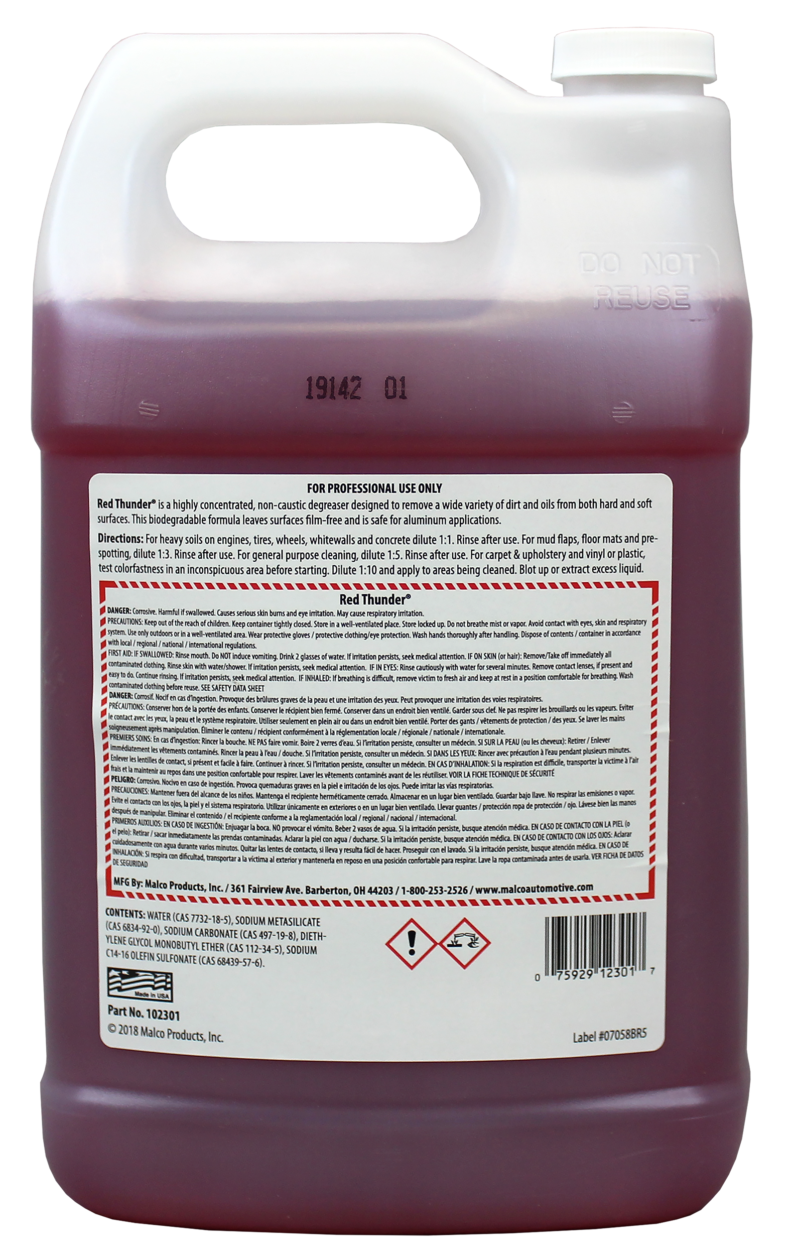 Red Thunder® es un desengrasante no cáustico altamente concentrado diseñado para eliminar una amplia variedad de suciedad y aceites de superficies duras y blandas. Esta fórmula biodegradable se limpia con enjuague, no deja residuos y es segura para superficies de aluminio.