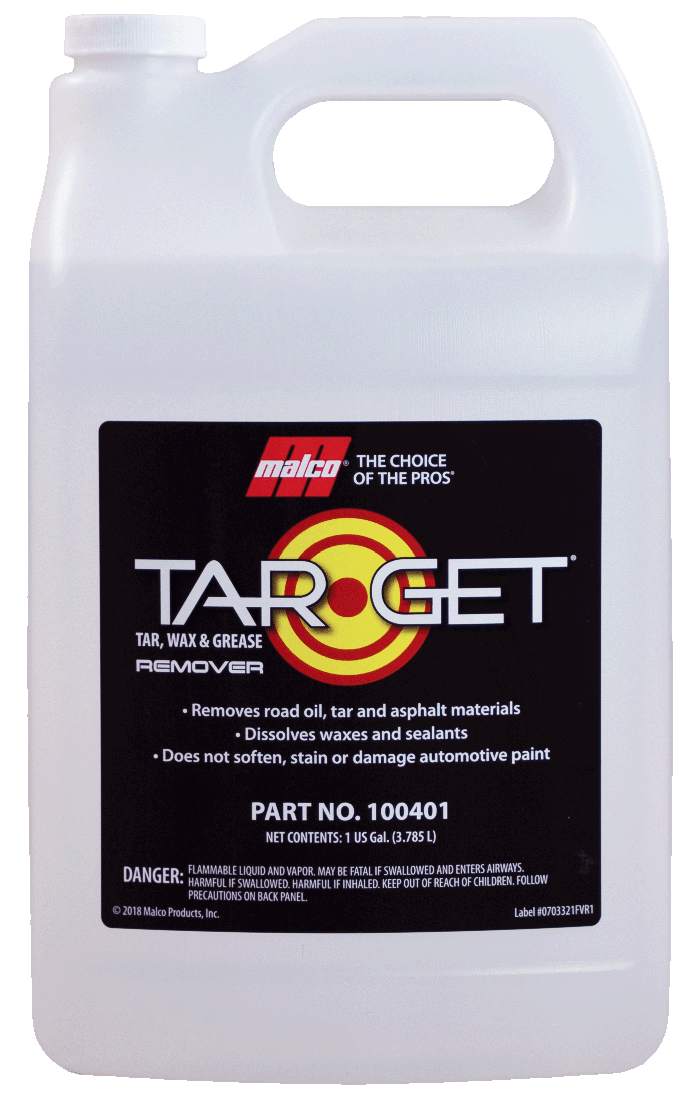 El removedor de alquitrán, cera y grasa Target elimina aceite de carretera, alquitrán, cera, selladores, silicona y compuestos para la parte inferior de la carrocería de superficies de automóviles pintadas y sin pintar, lo que lo convierte en el removedor de cera y alquitrán ideal. Este removedor de alquitrán es apto para acrílico, laca y esmalte sintético. Simplemente, rocíe y deje que la fórmula eficaz disuelva el alquitrán, la cera y la grasa, con un mínimo restregado.